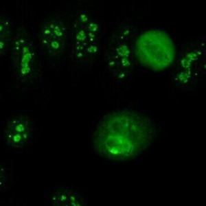 Discrepancy in HEp-2 IFA and western blot data. How do you explain the detection of antibodies by western blot (WB) that are not related to the pattern observed in HEp-2 cells by indirect immunofluorescence (IFA)? |